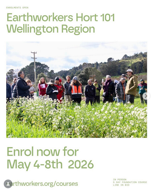 - The foundation course Hort 101 (4–8 May, Mangaroa Te Awa Kairangi – Wellington region)